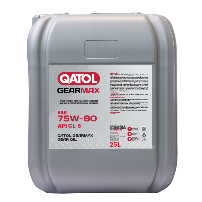 QATOL GEARMAX SAE 75W80-GL-5  is a fully synthetic all season gear lubricant formulated from synthetic base oils and an advanced additive system that have strong oxidation and foaming resistance for heavy-duty operations found in commercial fleets, manual transmissions, axles, and final drives