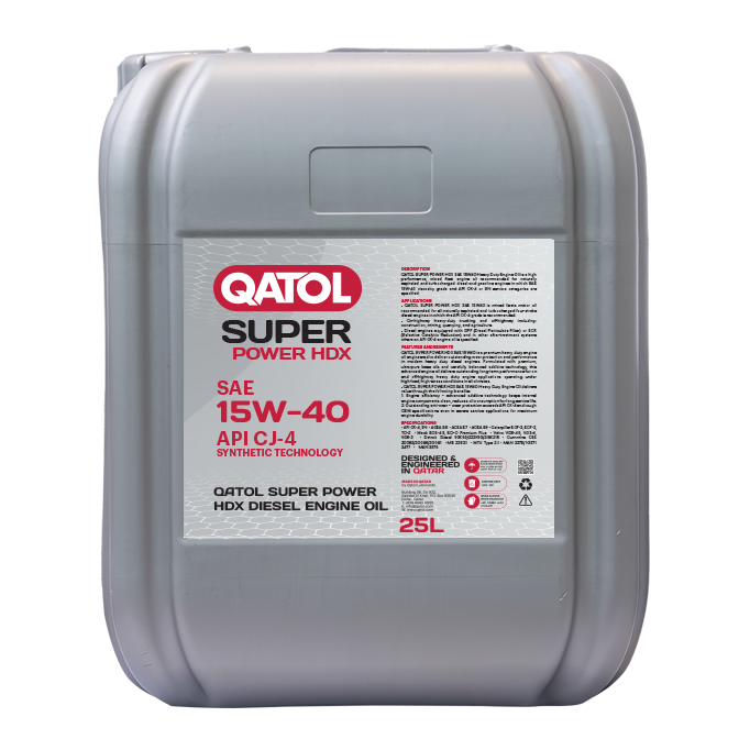 - QATOL SUPER POWER HDX SAE 15W40 Heavy Duty Engine Oil contains field proven additive technology which delivers maximum control on engine wear, outstanding engine cleanliness, and high TBN and viscosity retention for outstanding lubricant life and maximum engine durability. Metal anti-wear protection exceeds API CJ-4 standards and tough OEM specifications.