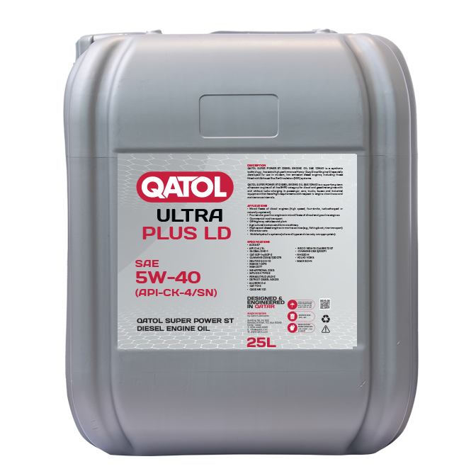 QATOL ULTRA PLUS LD SAE 5W40 is suitable & exceeds the performance level of most European, Japanese and American heavy-duty engines manufactures requiring API CK4/SN oils.